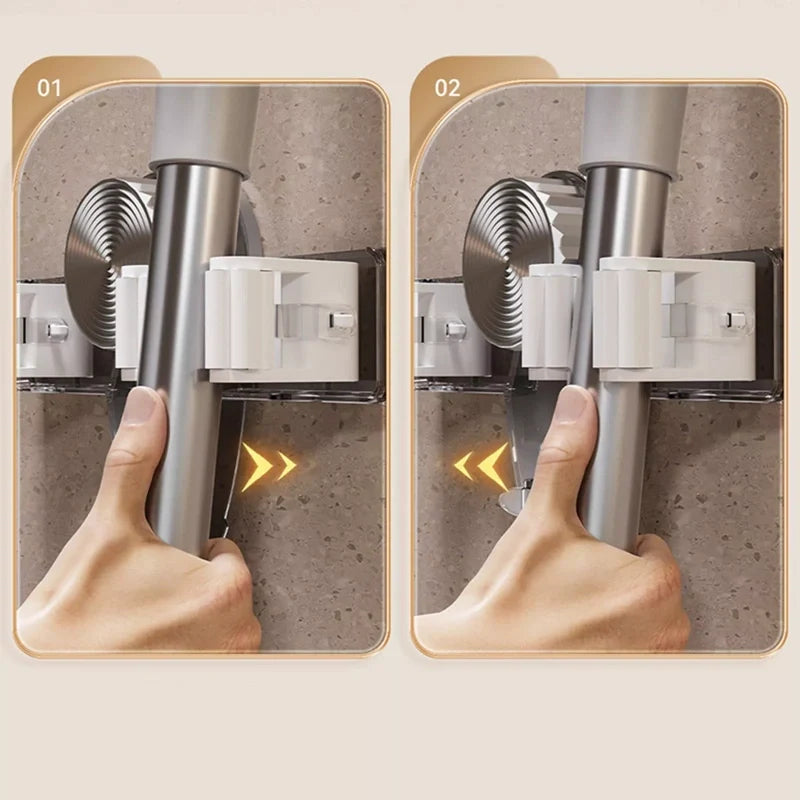 MAXIMÁLIS KÉNYELEM: A tapadókorongos fej bármilyen szögben elforgatható, így bármely sarokban vagy nem szokványos helyen is elhelyezhető, így a seprűtartó és felmosóakasztó falra szerelhető tartó könnyen hozzáférhető.