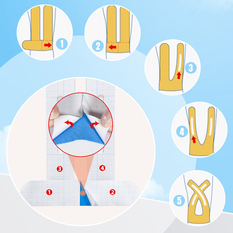 A csomag tartalma: 1 * 6 darab előre vágott kinesiotape