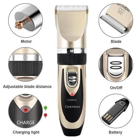 Vezeték nélküli kialakítás az egyszerű használat érdekében. A háziállat-ápoló készlet töltővel van felszerelve. Öt óra alatt feltölthető, és 70 percig használható.