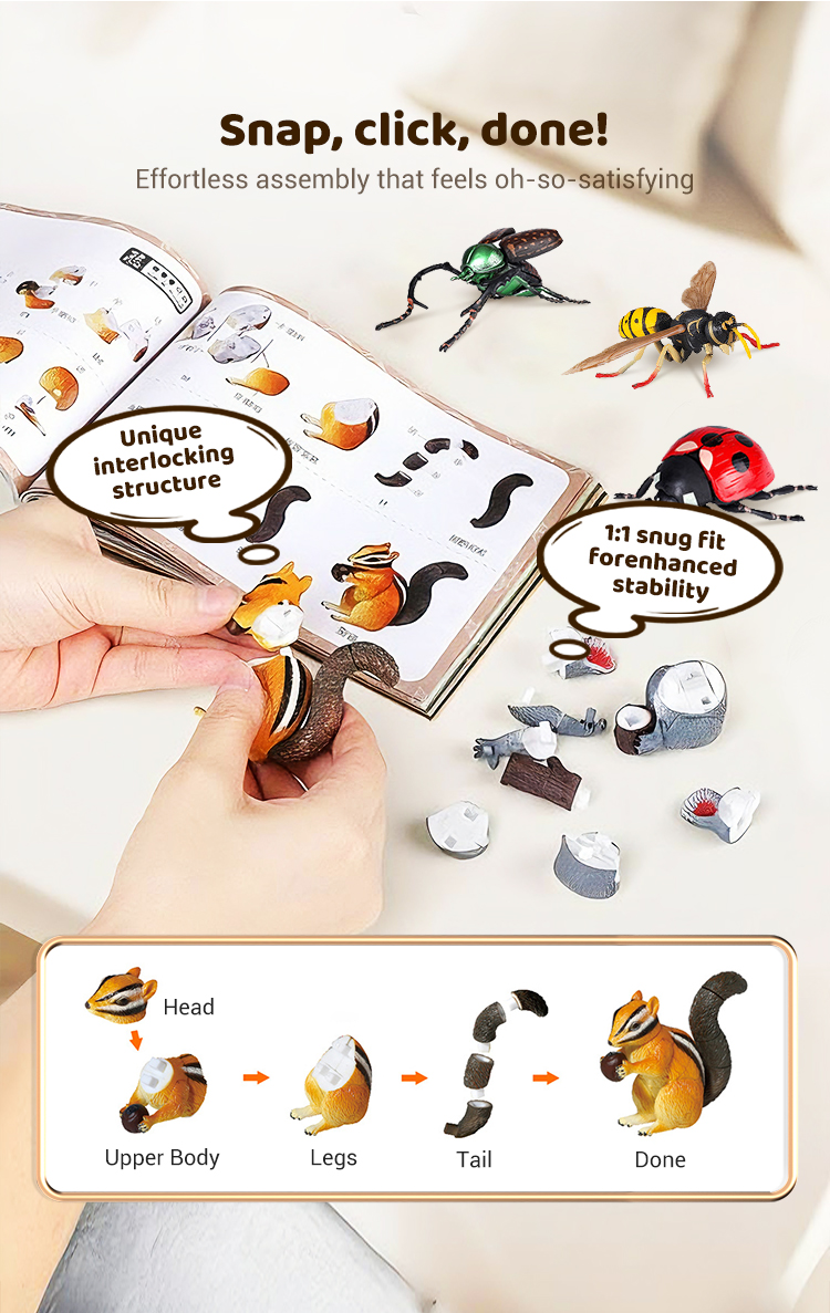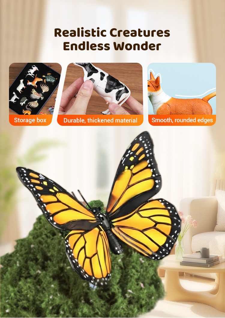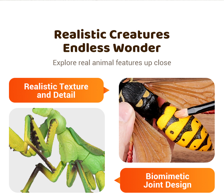 TUDOMÁNYOS MEGKÖZELÍTÉS – Mindegyik modell valódi rovarokat/állatokat másol hiteles színes mintákkal és mozgatható ízületekkel. A realisztikus részletek keltik a természet iránti kíváncsiságot, miközben gyakorlati játék által tanítják a biológiai pontosságot.