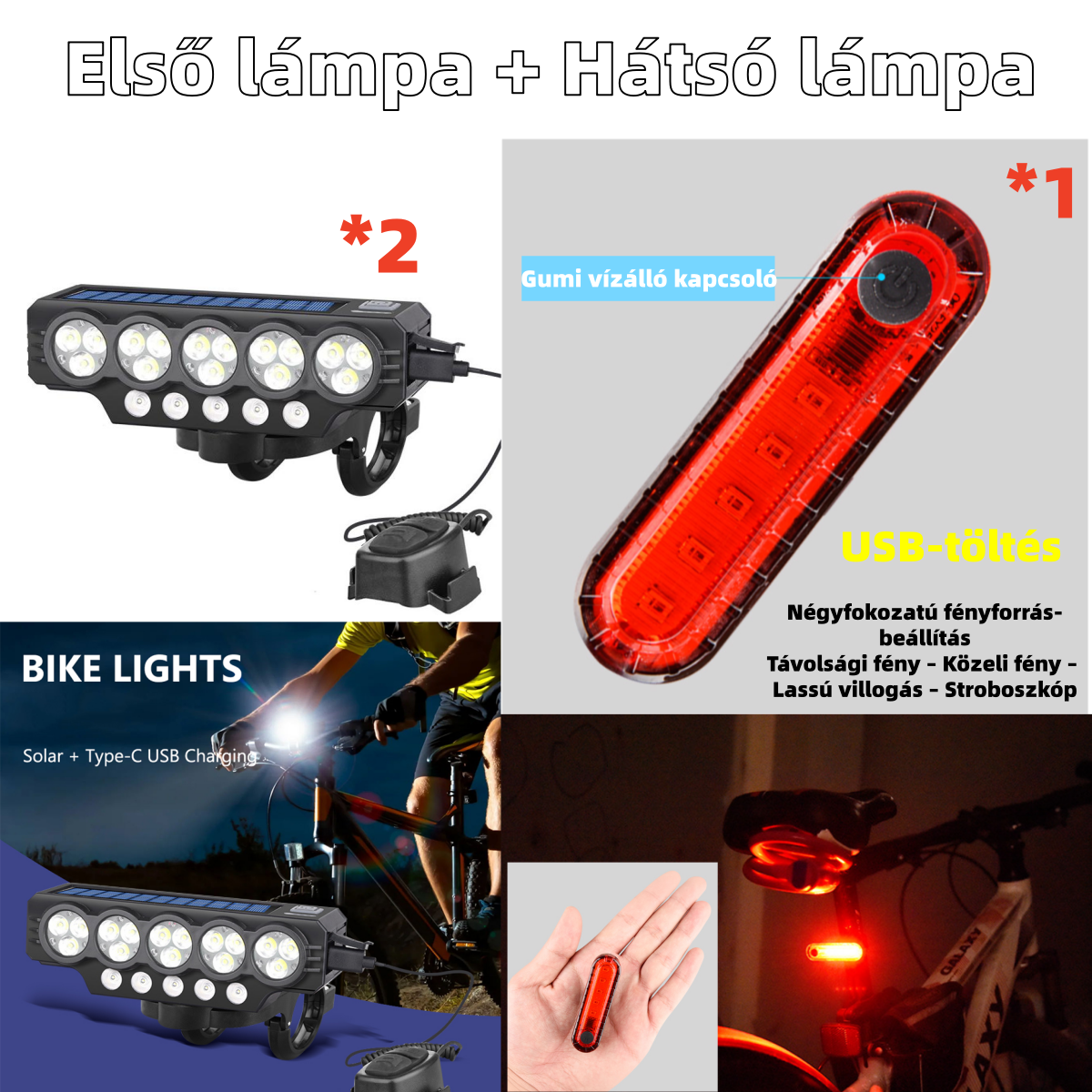 A csomag tartalma: 1* napelemes és USB-vel tölthető kerékpárlámpa