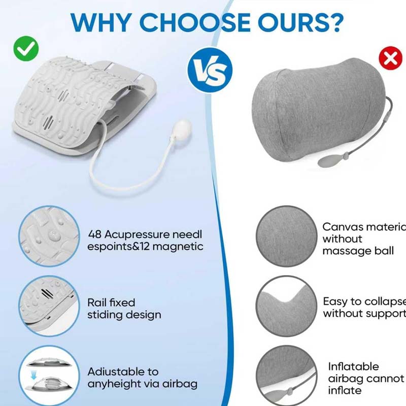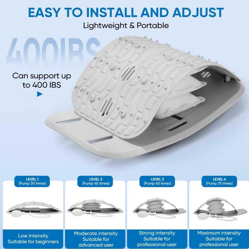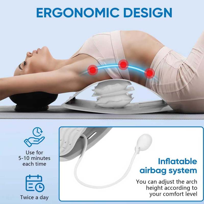 KÉTFELHASZNÁLHATÓ SOKOLDALÚSÁG - Használja fekvő helyzetben intenzív gerincnyújtáshoz, vagy rögzítse székéhez folyamatos ágyéktámaszhoz. Ez az alkalmazkodóképesség ideális megoldást kínál a hátfájás enyhítésére otthon vagy az irodában.
