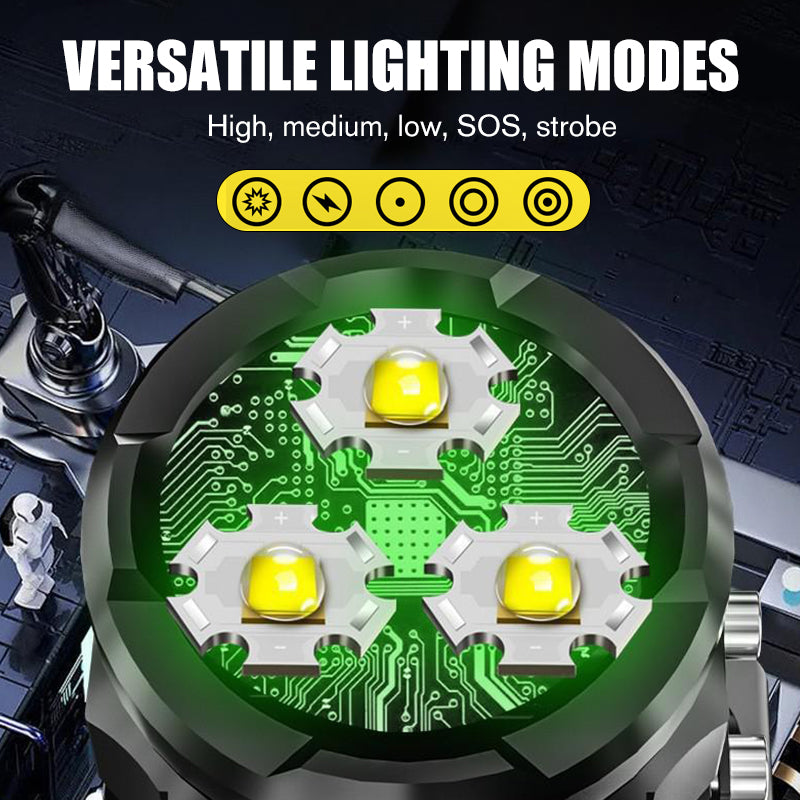 HÁROMSZOROS NAGY FÉNYEREJŰ LEDEK: Három továbbfejlesztett LED-izzó kompakt háromszög alakú kialakításban ultra-fényes, koncentrált világítást biztosít nagy hatótávolságú megvilágítással, amely tökéletes szabadtéri kalandokhoz, vészhelyzetekhez és mindennapi használatra.